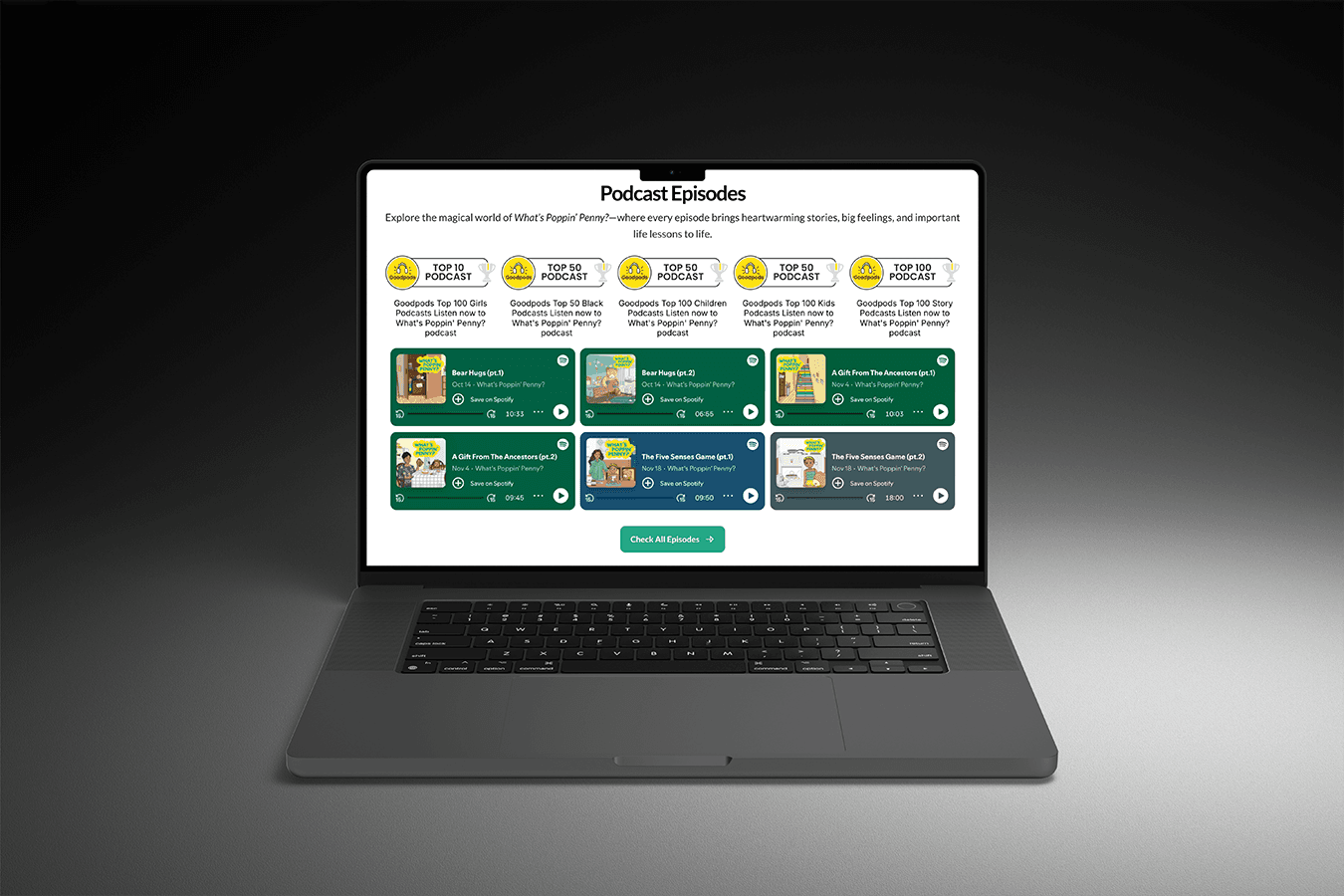 What’s Poppin Penny is a kids podcast and commerce platform designed to bring storytelling and products together in a safe, parent-friendly digital experience. I owned the UX and UI design end to end, focusing on clear structure, age-appropriate design, and trust across both content and shopping flows.